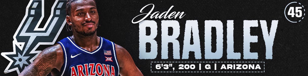 #45. SAN ANTONIO SPURS (via MIA) — Jaden Bradley | G | Arizona