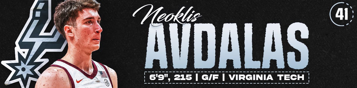 #41. SAN ANTONIO SPURS (via POR) — Neoklis Avdalas | G/F | Virginia Tech