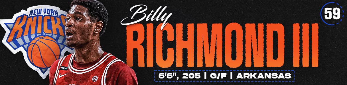 #59. NEW YORK KNICKS (via DET) — Billy Richmond III | G | Arkansas