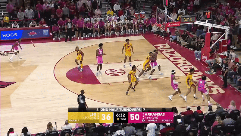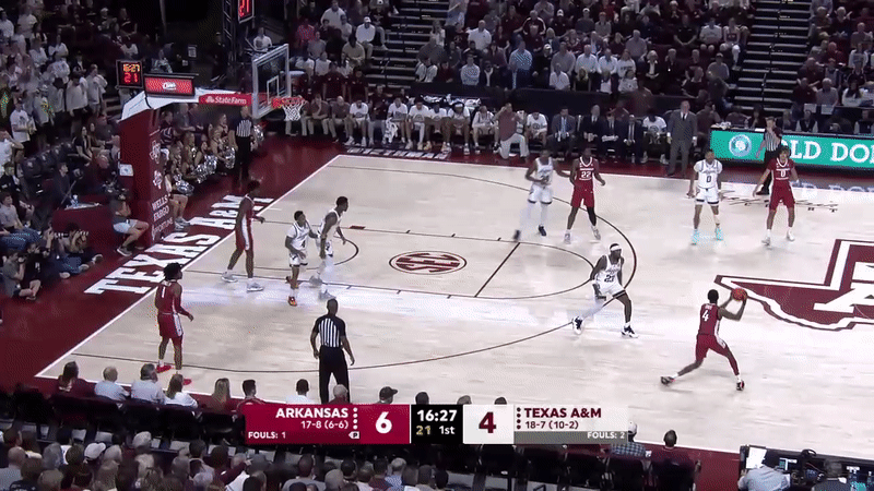 Black’s ability to get into the paint ad nauseam this season would be impressive if he were playing in an offense that was chock full of spacing. The fact that he’s been able to get downhill so often in spite of the lack of spacing for Arkansas makes it all the more impressive. Because Ant hasn’t proven to have a consistent jump shot, he needs to get paint touches to make full use of his passing gifts. Paint touches cause rotations, and rotations lead to passing opportunities.