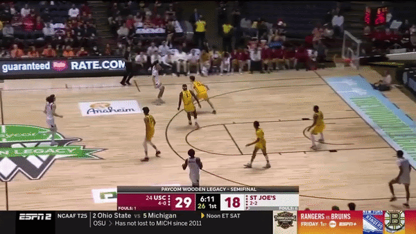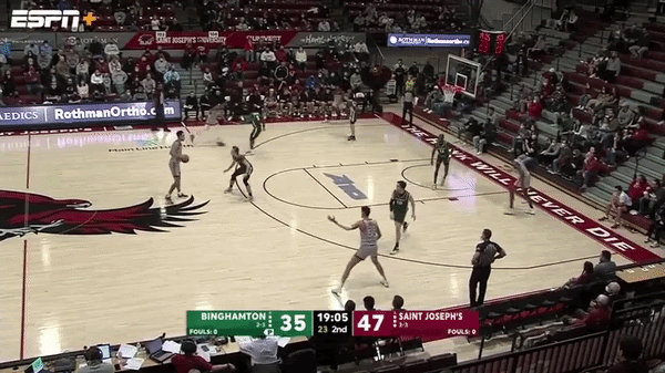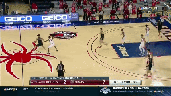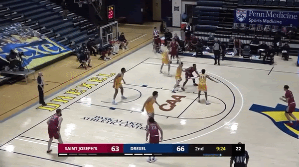Did you enjoy the over 4 minutes of Jordan Hall hitting the roll man? Of course you did. So here is over 3 minutes of him hitting spot ups out of PNR. St. Joes’ scores 0.875 PPP (points per possession) when Jordan Hall does this, which ranks in the 47th Percentile, via Synergy. This is just an average number but one that is mainly due to the team shooting just 34.5% on these possessions. Looking back on last season's numbers, those figures were 0.829PPP (39th Percentile = Average) and the team shot just 28.6% on these possessions. The tape tells a better story as time and time again he makes the smart play and has the ability to draw multiple defenders even when things break down and hit the open man. Let’s take a look at a few specific examples below: