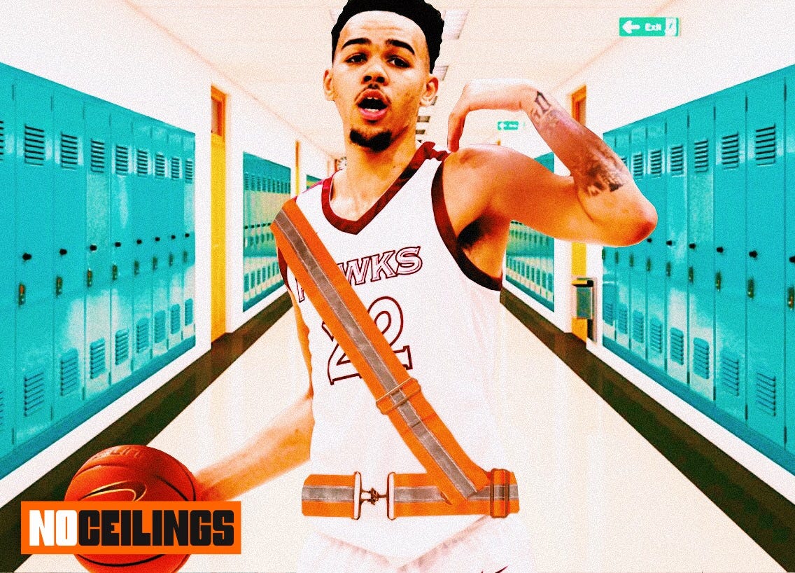 In this last clip, Hall has zero advantage after the screen is set but that doesn’t stop him. He is still able to go through his man and make his way into the paint which creates a help situation that shifts the defense. Once the weak side defender rotates down, he hits the spot up shooter for the widest of open 3 point attempts you’ll ever see.