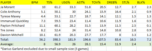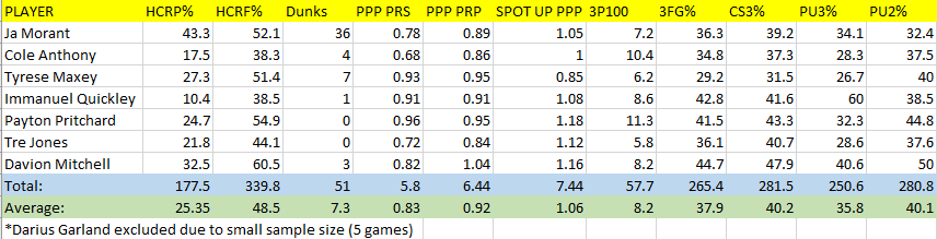 2. Stylistic diversity makes things even tougher to pin down within a small sample. Even just looking at the hit group, these are very different types of players. A Tyrese Maxey style secondary initiator is different than a Ja Morant lead guard, and that’s different than a defensive table setter like a Tre Jones.