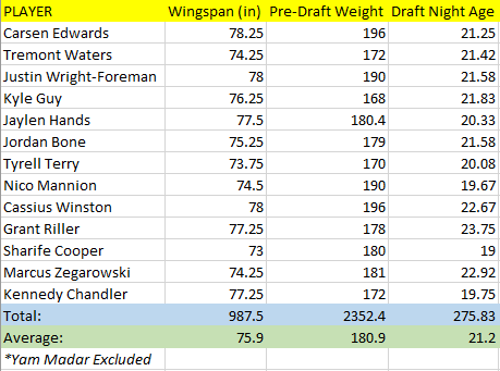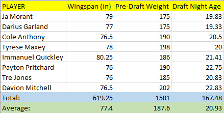 -I examined players selected in the last five drafts. The idea here is to get a decent sample, but still keep it “modern” enough to be relevant to where the league is headed. Keep in mind, this does trim out a talented small guard crop in 2018 (Trae Young, Jalen Brunson). But the reason I went more recent is because this is an incredibly recent phenomenon, as the data will show. The “small guard crunch” popped up in fast and dramatic fashion. I wanted to account for that first and foremost. This is more about where the league is going rather than where it has been. Also, I have a desk job, a wife, and a child, I’ve got to draw the line somewhere.