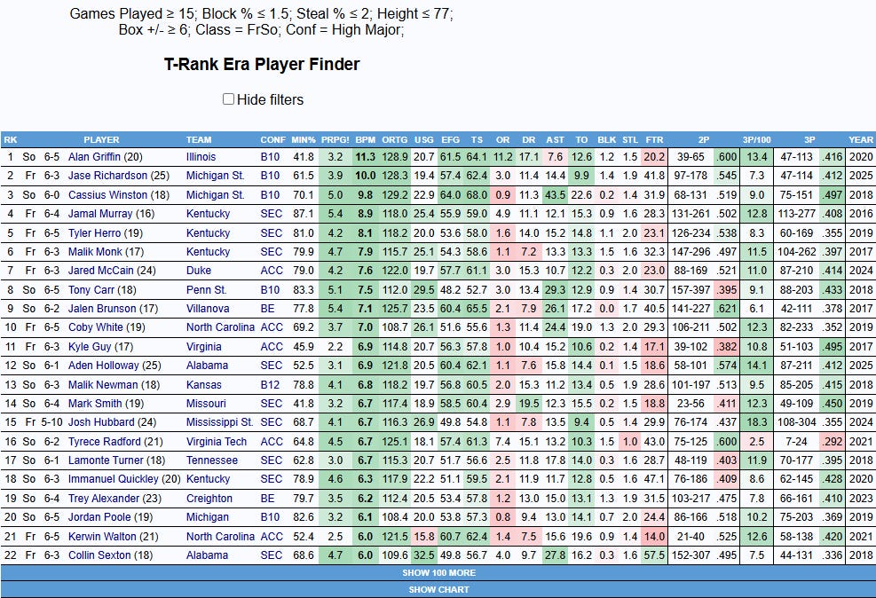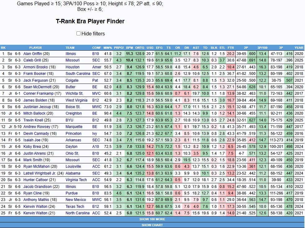 For this query, I looked at productive young college players who were on the smaller side that offered little in the way of defensive production.