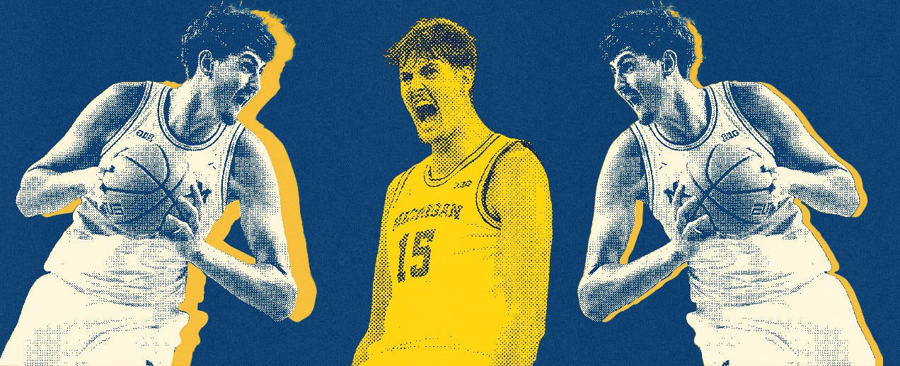 There are fair reasons to be skeptical of nearly every draft prospect. For Mara, one of my biggest worries is whether or not he can sustain a hefty load of minutes over the course of an 82-game schedule. While Michigan’s outright dominance has surely played a role in this, Mara is only averaging 22.6 MPG on the year. To be fair, one of his signature performances this season saw him play 37 minutes against Wake Forest. But at times, Mara can appear tired and start to get up-and-down the floor a bit slower. I also have concerns about him closing out games, as he’s a 49.1% free-throw shooter on the year and could be a prime Hack-A-Shaq target in crunch time. I’ve seen gripes about Mara’s turnover rate, but I don’t sweat that too much. Generally, players tend to refine themselves and get better at reading the floor at the next level. On defense, he has a bad tendency to play too close to his man off the ball on the weak side of the floor, even if they aren’t a shooter. Given that he’s not the fastest player in the world, he can be late to rim rotations because of this habit. It’s something he will need to refine, especially given how much wider the spacing can tend to be on an NBA floor.