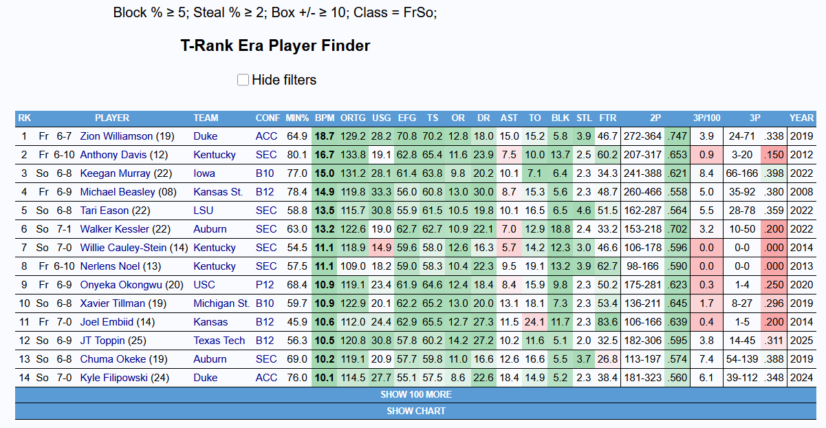 When running a historical query on freshmen or sophomores who have hit those BPM, blocks percentage, and steals percentage figures before, the evidence is clear that Toppin is a high impact player. I’m not claiming that Toppin will end up like any of the star prospects on this list, but it’s a meaningful list to be on as a second-year player. It also speaks to the likelihood that Toppin can carry over his great college production into the NBA next season.