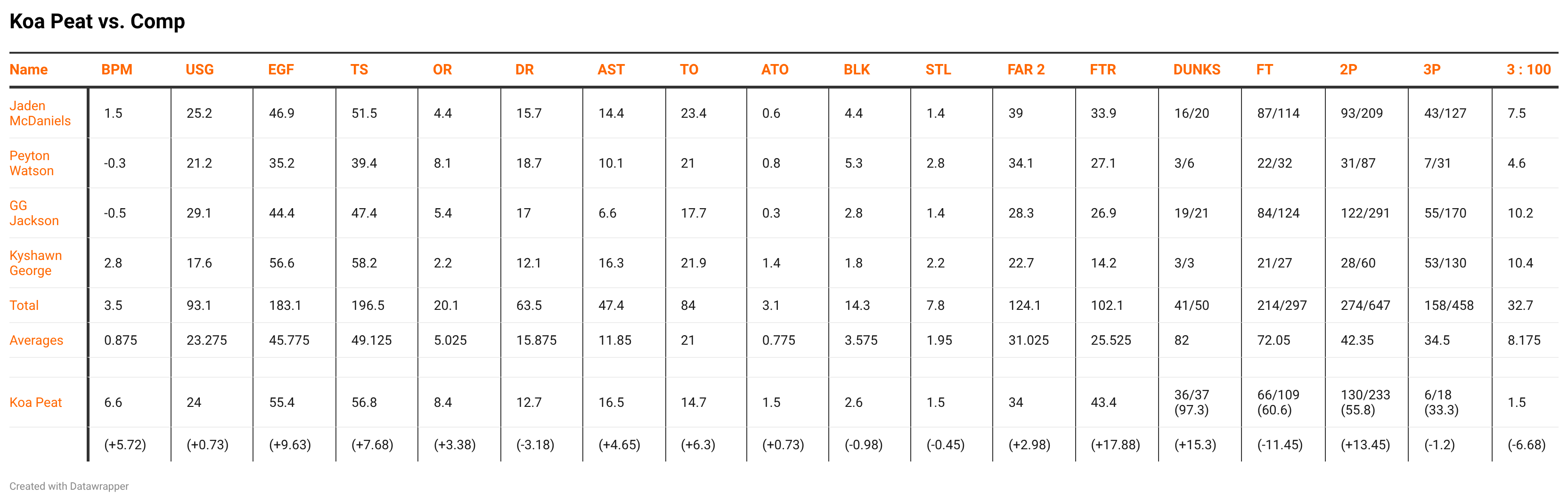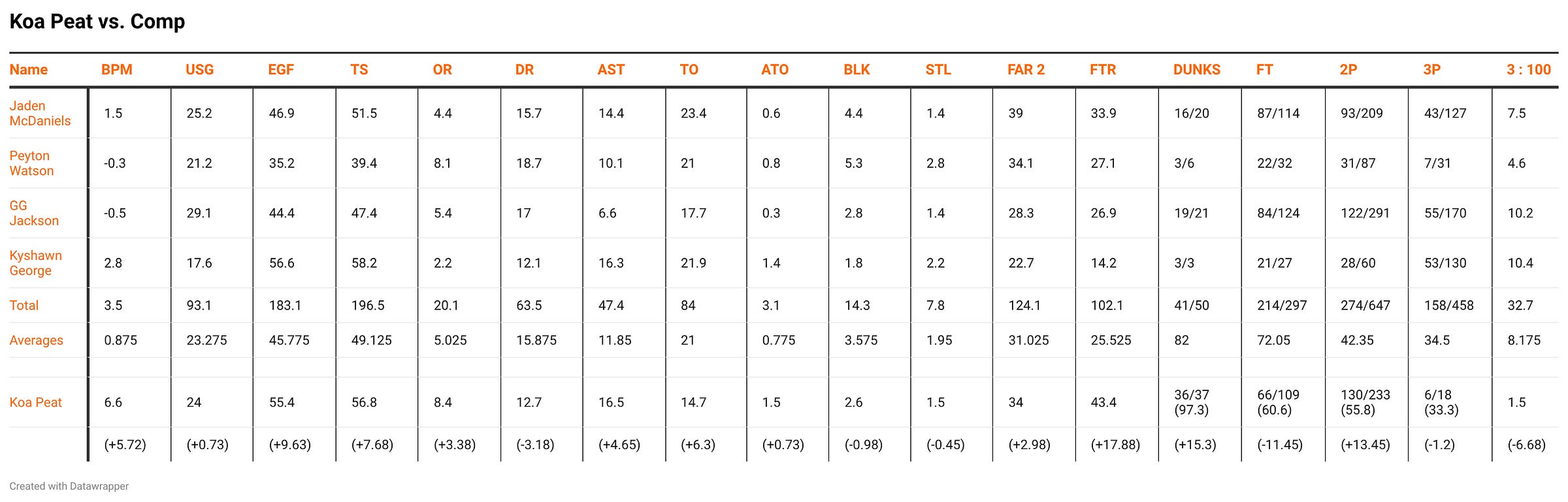 Let’s start with how Koa compares to those players. He is above average compared to those four players in the following categories: