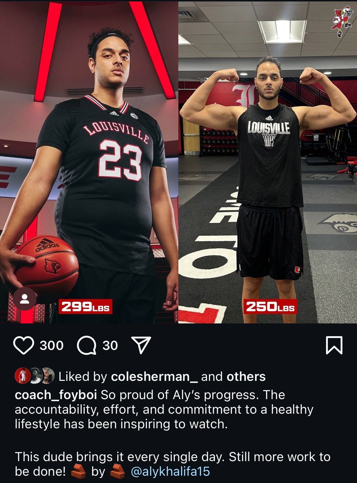 I can hear the complaints coming now. “He’s going to turn 24 in November!” “He had a sub-50 True Shooting Percentage!” “He’s super slow and ground-bound!” “BYU got torched defensively when he was on the floor!” All of that is valid. But what if I told you that in the time since we last saw Aly Khalifa, he got absolutely shredded?